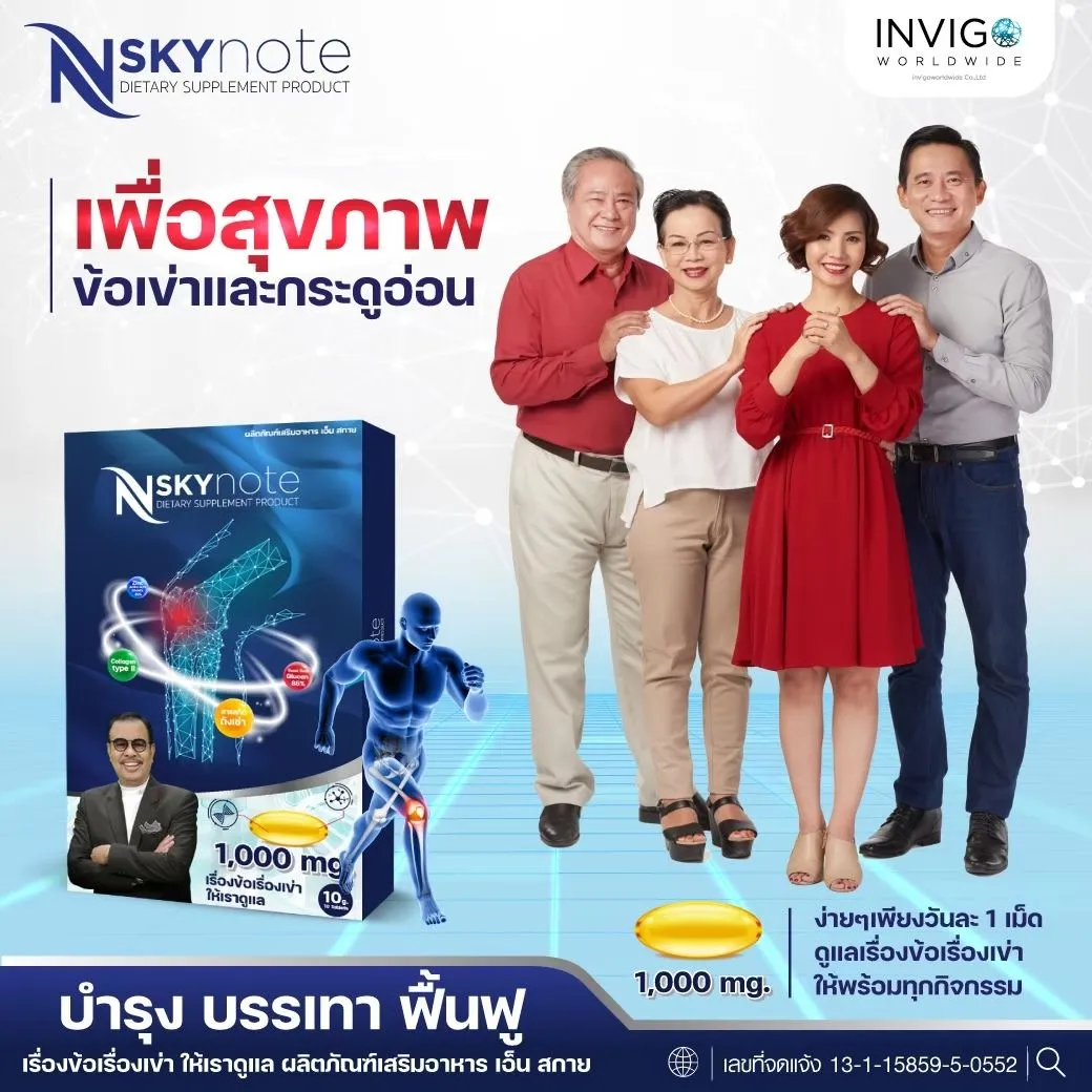 NSkynote เอ็น สกาย โน๊ต เชิญยิ้ม อาหารเสริมบำรุงกระดูกและข้อ อาหารเสริมกระดูกเสื่อม มีส่วนผสมของถั่งเช่าทิเบตสารสกัดนำเข้าจากประเทศจีน มีคุณสมบัติหลายด้านในการดูแลสุขภาพสรรพคุณระดับยาอายุวัฒนามีประโยชน์นานัปการ บำรุง บรรเทา ฟื้นฟู คัดสรรมาอย่างดีเพื่อสุขภาพกระดูกและข้อเข่า
